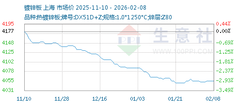 2月5日生意社镀锌板基准价为4052.50元/吨