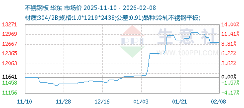 2月6日生意社不锈钢板基准价为12725.00元/吨