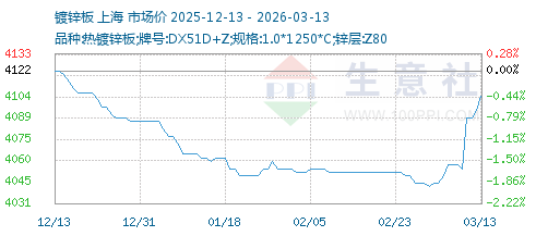 3月12日生意社镀锌板基准价为4090.00元/吨