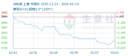 3月10日生意社冷轧板基准价为3737.50元/吨